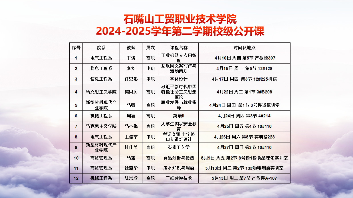 2025-05教以前行,研以致遠 | 石嘴山工貿(mào)職業(yè)技術(shù)學(xué)…為充分發(fā)揮課堂教學(xué)的育人主渠道作用,全面推進學(xué)院課堂教學(xué)方法和課程評價改革,完善課堂質(zhì)量督導(dǎo)評價機制,不斷加強教學(xué)工作診斷…